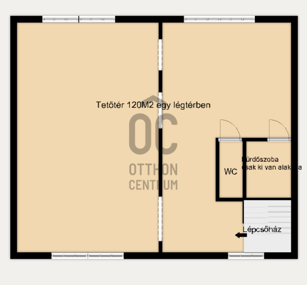 - egy légtérben 170 M2, szintén vizesblokkal, WC-vel, illetve a fürdőszoba nincs kialakítva, viszont a vizet felvitték