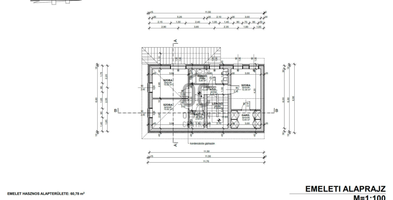 Emelet helyiségei : 3 szoba, fürdő, háztartási helyiség + az egyik szobához gardrob szoba.