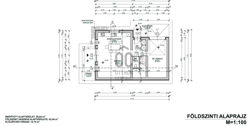 Földszint helyiségei : konyha - étkező - nappali, + terasz + garázs