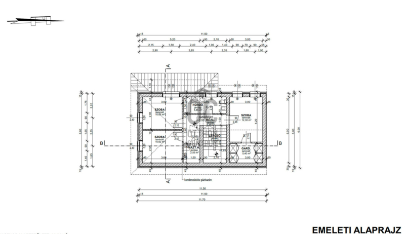 Emelet helyiségei : 3 szoba, fürdő, háztartási helyiség + az egyik szobához gardrob szoba.