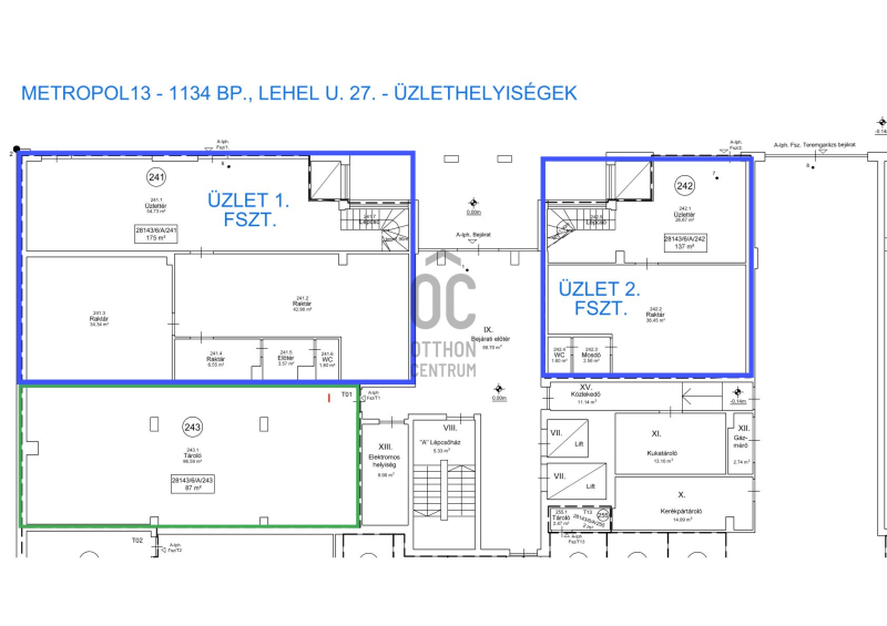 *Galérián lévő tároló: +34 m² (igény szerint egybenyitható az üzlettérrel)