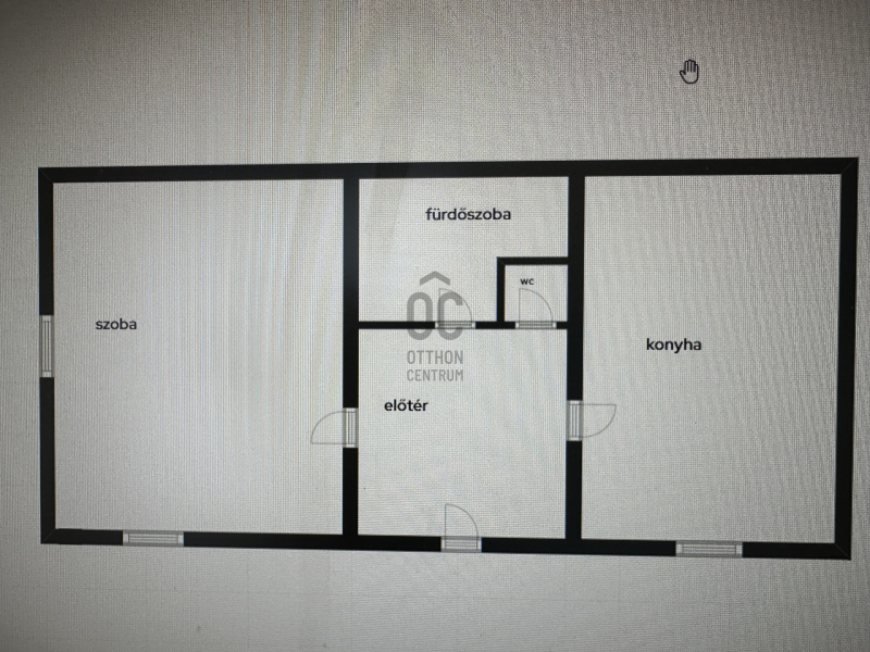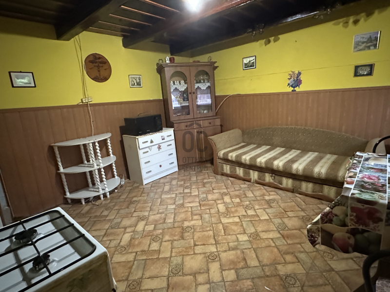 A házba egy tágas előszobába juthatunk , ebből balra a szoba, jobbra a konyha nyílik. A bejárattal szemben a fürdőszoba és a különálló WC