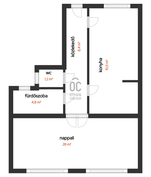 Tágas terek: A lakás szíve a hatalmas konyha-étkező, ahol végre kényelmesen megvendégelheted a barátaidat. A külön WC és fürdőszoba pedig tovább növeli a komfortérzetet.