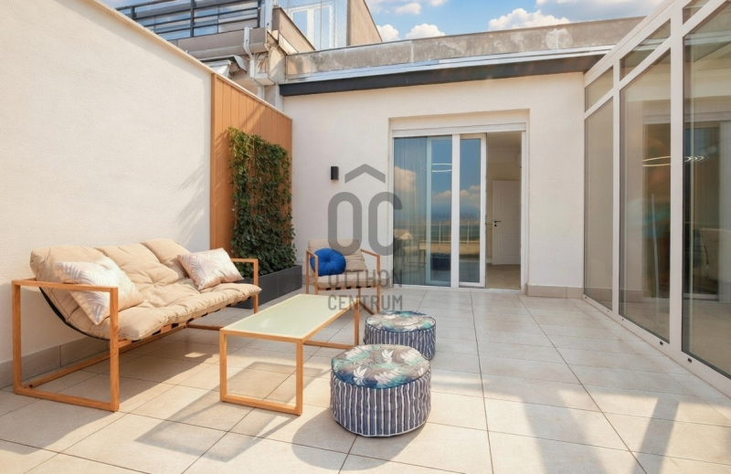 A tágas belső terek mellett hatalmas privát tetőterasz várja kültéri zuhannyal – ideális hely a város feletti pihenéshez. A lakásban 2 hálószoba, 2 fürdőszoba és egy nagy méretű nappali található, és válogatott prémium bútorokkal berendezett és gépesített. (A bútorok egy része a fotókon még nem látható.)