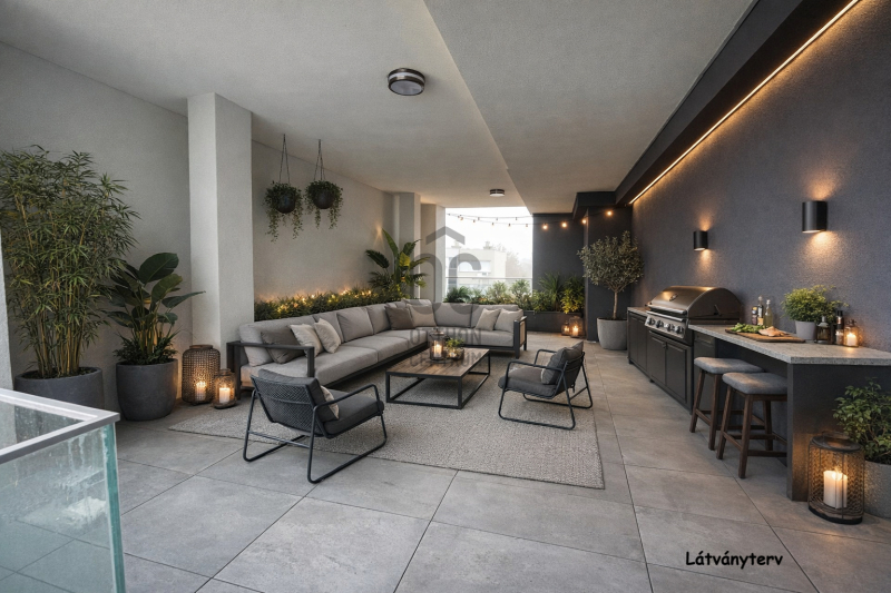 - 55 m² saját, fedett terasz