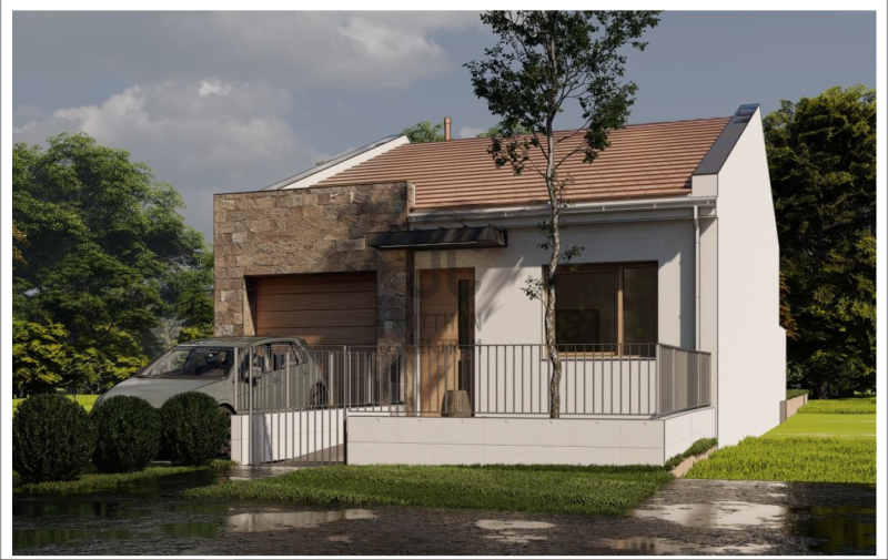 - Terasz és kert: nappaliból nyíló 6 m²-es terasz + 200 m² saját kert