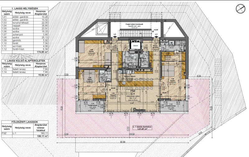 Az 1-es és a 2-es lakos egybenyitva is kérhető, a teljes földszint egyben!