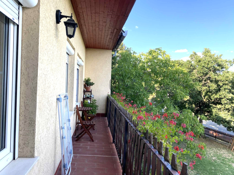 A ház alsó lakása kertkapcsolatos, szép nagy terasszal rendelkezik, és 3 szobás. Emeleti lakásai külön bejáratúak, zöld panorámával, erkéllyel ellátottak. Gondozott zöld udvara van.