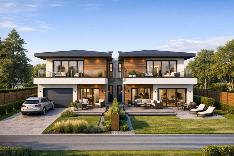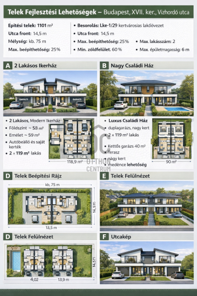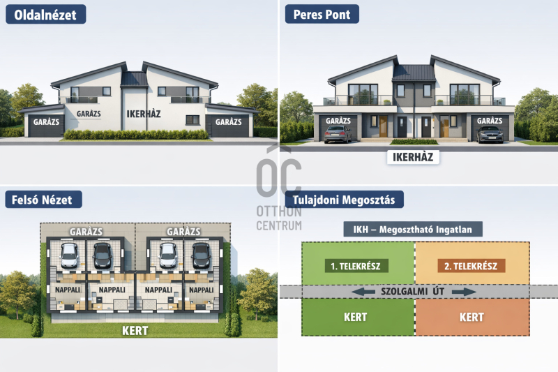 A telek mérete lehetővé teszi ikerház kialakítását, ahol mindkét lakás saját kerttel és akár garázzsal is rendelkezhet.