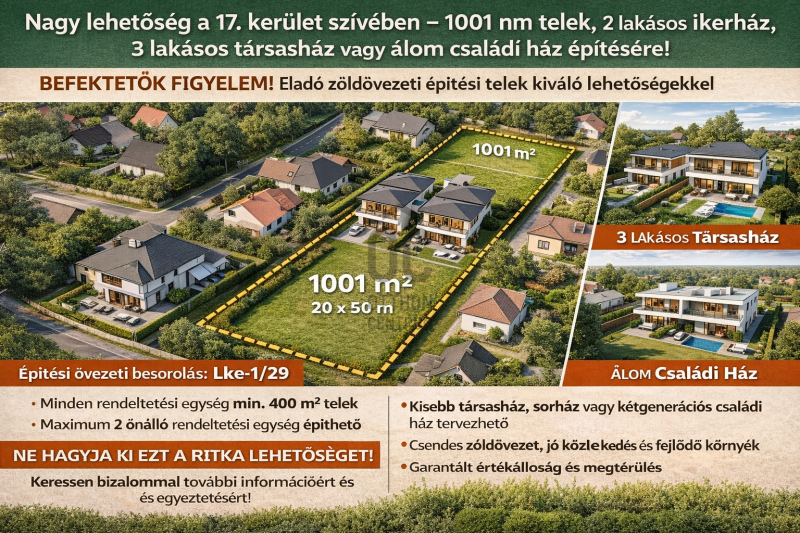 Nagy lehetőség a XVII. kerületben – 1101 m² építési telek!
