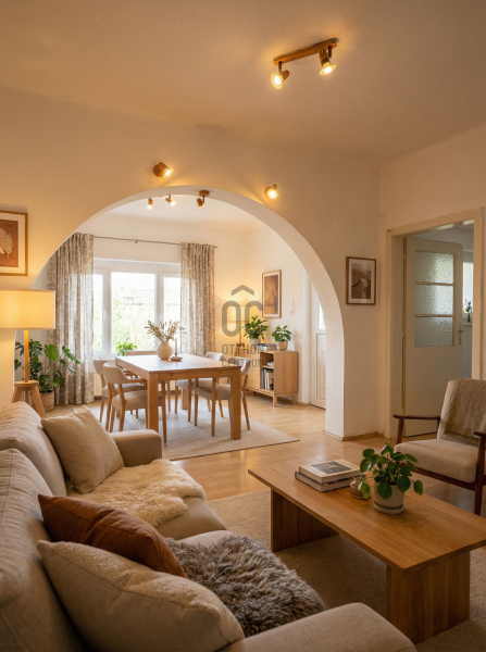 A ház belső elrendezése három tágas és egy kisebb önálló szobát tartalmaz, amely lehetővé teszi a családi élet kényelmét, vagy akár a vendégek fogadását is. A nappali világos és barátságos, közös az étkezővel és a konyha résszel, tökéletes helyszín a közös pillanatok eltöltésére. A fürdőszoba-wc praktikus elhelyezkedésű, így a családtagok számára kényelmes használatot biztosít, valamint van mellette egy önálló wc is. Az ingatlan belső állapota átlagos, megfelelő, így a leendő tulajdonos saját ízlésének megfelelően alakíthatja át, akár azonnal költözés mellett, igény szerint. A fűtés gáz-cirkó rendszerrel megoldott, ami gazdaságos és hatékony megoldást kínál a téli hónapokban.