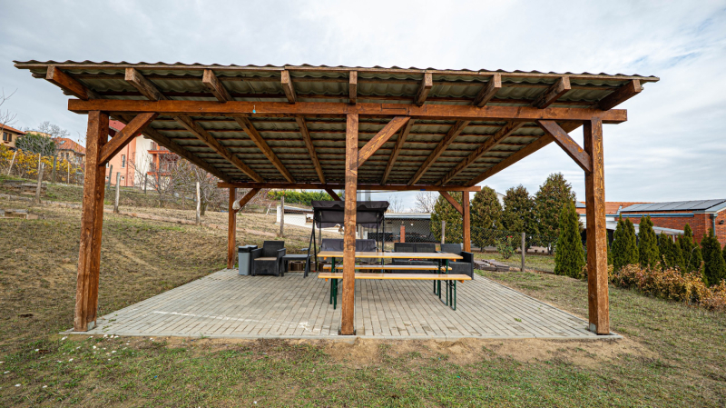 A tágas teraszon, illetve a telken található fedett teraszon egy nagyobb baráti összejövetel is könnyedén megszervezhető.