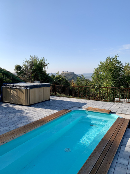 Maga az épület együttes egy 3522 nm -es panorámás telken helyezkedik el! Melyen helyet kapott 5x2 méter nagyságú fűtött medence és egy jacuzzi.