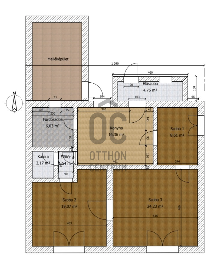 - 3 szoba, fürdőszoba, konyha, kamra, több tároló helyiség és melléképület