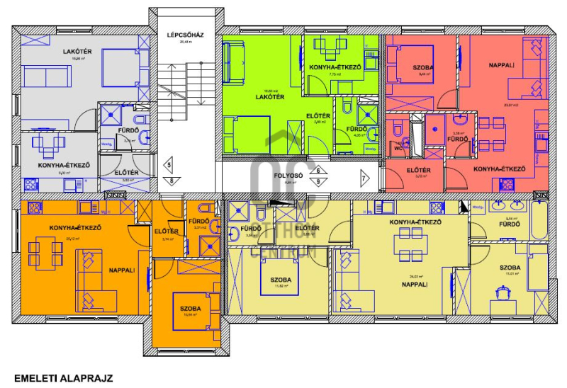 Az alaprajzokon feltüntetett négyzetméterek tájékoztató jellegűek, a végső méretek kisebb mértékben változhatnak.