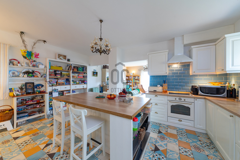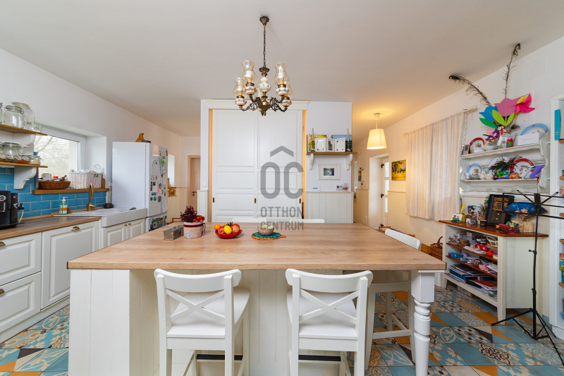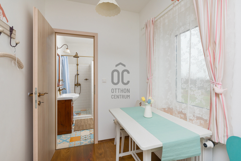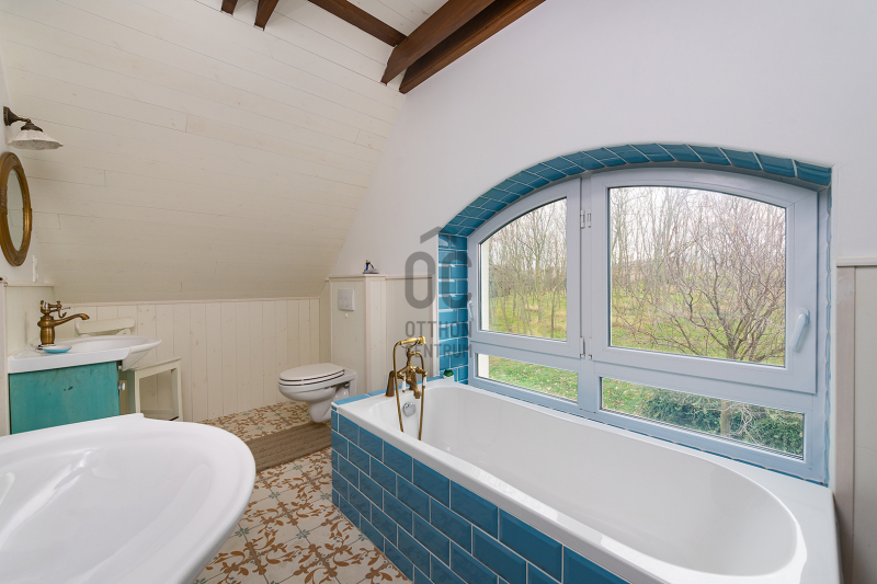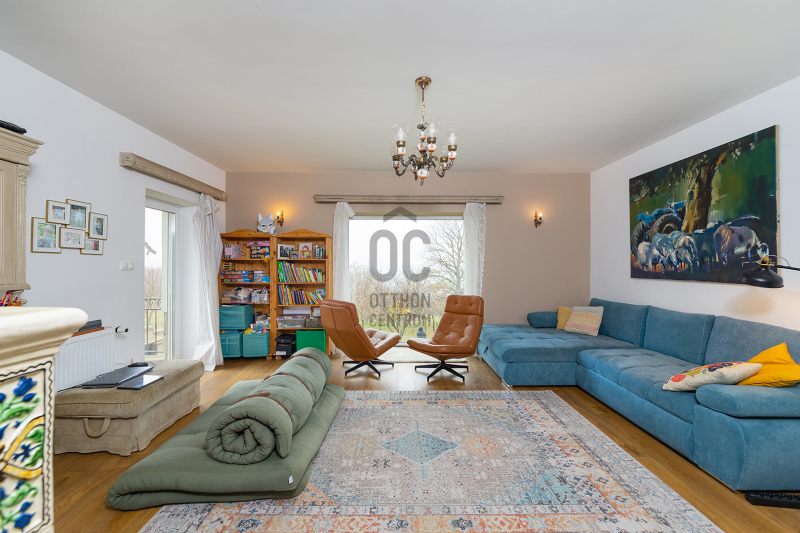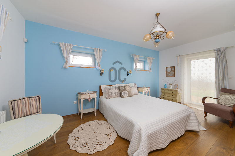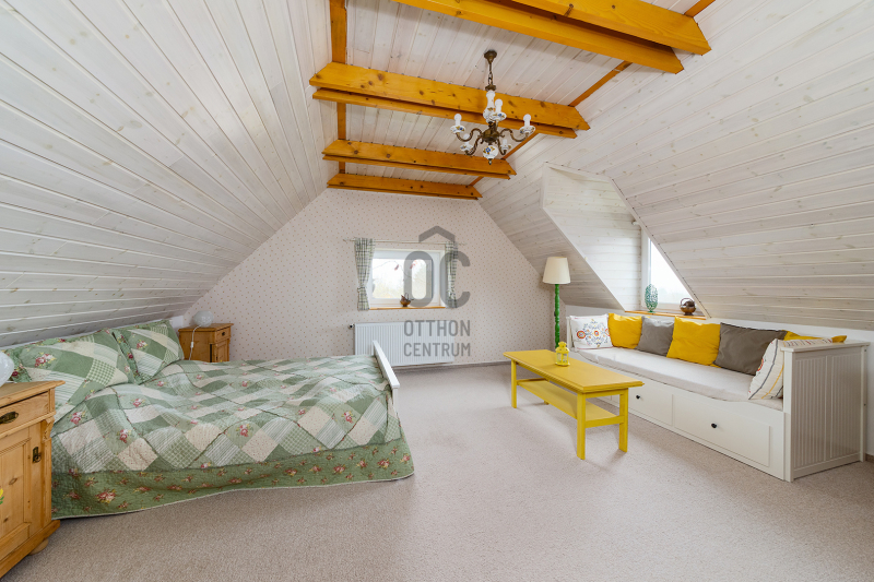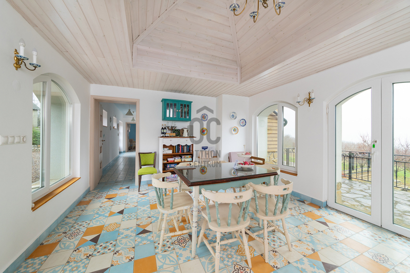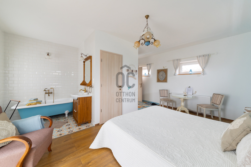 - 2014-ben épített hőszigetelt tégla lakóingatlan, melynek össz nettó alapterülete 366 m2 (Fsz+Tetőtér+Télikert+Pince). Ebből a saját lakórész: Amerikai konyhás nappali, plusz 5 hálószoba, 2 fürdőszoba, háztartási helyiség. Panoráma ablakok, cserépkályha teszik nagyon egyedivé és hangulatossá. A vendégrészben: 4 darab saját fürdőszobás apartman. Elektromos és vegyes tüzelésű kazán, melyeket egy nagy méretű puffer tartály egészít ki, plusz légkondik.