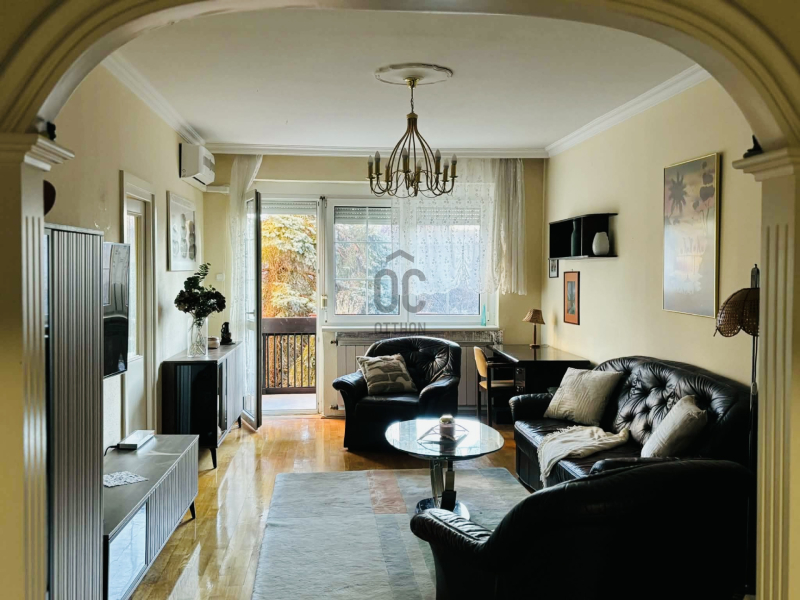 Törökvész frekventált, mégis zöldövezeti részén, a Baba utca Törökvész úthoz közeli szakaszán kiadó egy 62 m²-es, magasföldszinti, erkélyes, 2 hálószobás + tágas nappalis lakás, teljesen bútorozva és gépesítve.