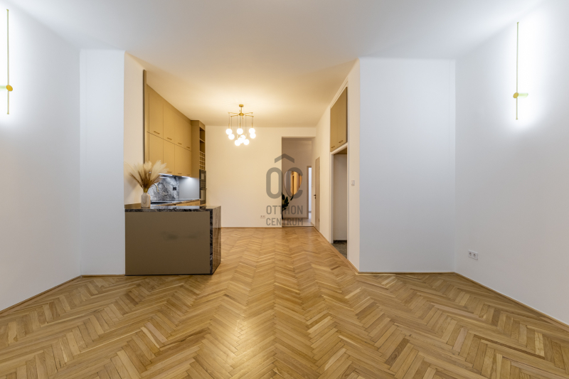Jó állapotú ház félemeletén - 5 szintes, zártlépcsőházas, liftes, bekamerázott épületben. A teljes körű, prémium minőségű felújítás során a 70 m² lakás megújult.