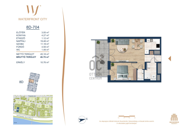 A Waterfront City egy új, modern városnegyed a 3. kerületben, ahol a természet közelsége és a városi kényelem tökéletes egyensúlyban van. A Duna-part közvetlen szomszédságában elhelyezkedő fejlesztés különleges atmoszférát kínál: a sétányt új épületek határolják, üzletekkel, kávézókkal és szolgáltatásokkal, amelyek élhető közösségi teret teremtenek.