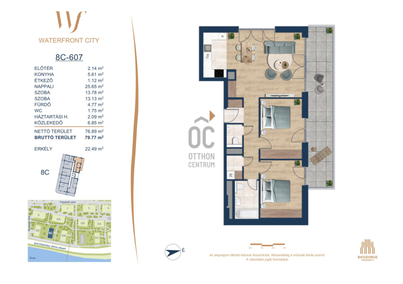 A Waterfront City egy új, modern városnegyed a 3. kerületben, ahol a természet közelsége és a városi kényelem tökéletes egyensúlyban van. A Duna-part közvetlen szomszédságában elhelyezkedő fejlesztés különleges atmoszférát kínál: a sétányt új épületek határolják, üzletekkel, kávézókkal és szolgáltatásokkal, amelyek élhető közösségi teret teremtenek.