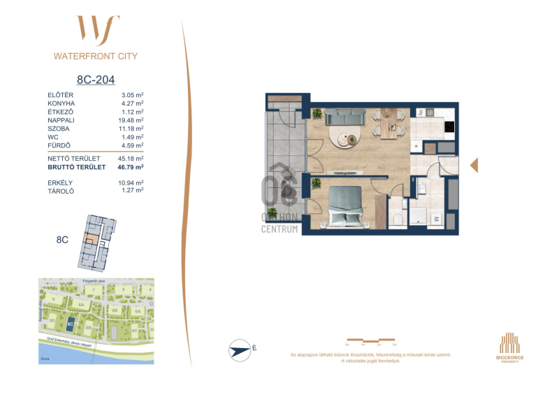 A Waterfront City egy új, modern városnegyed a 3. kerületben, ahol a természet közelsége és a városi kényelem tökéletes egyensúlyban van. A Duna-part közvetlen szomszédságában elhelyezkedő fejlesztés különleges atmoszférát kínál: a sétányt új épületek határolják, üzletekkel, kávézókkal és szolgáltatásokkal, amelyek élhető közösségi teret teremtenek.