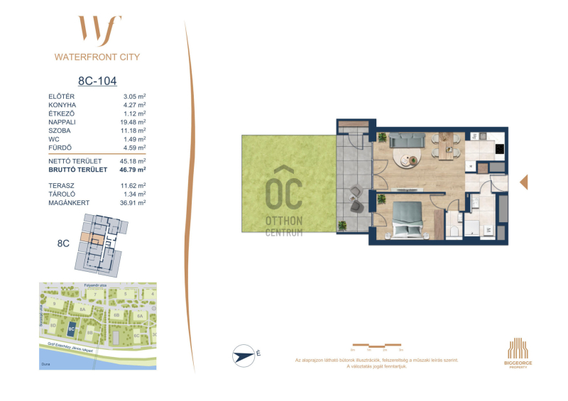 A Waterfront City egy új, modern városnegyed a 3. kerületben, ahol a természet közelsége és a városi kényelem tökéletes egyensúlyban van. A Duna-part közvetlen szomszédságában elhelyezkedő fejlesztés különleges atmoszférát kínál: a sétányt új épületek határolják, üzletekkel, kávézókkal és szolgáltatásokkal, amelyek élhető közösségi teret teremtenek.