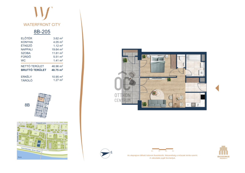 A Waterfront City egy új, modern városnegyed a 3. kerületben, ahol a természet közelsége és a városi kényelem tökéletes egyensúlyban van. A Duna-part közvetlen szomszédságában elhelyezkedő fejlesztés különleges atmoszférát kínál: a sétányt új épületek határolják, üzletekkel, kávézókkal és szolgáltatásokkal, amelyek élhető közösségi teret teremtenek.