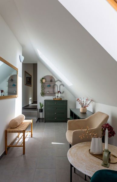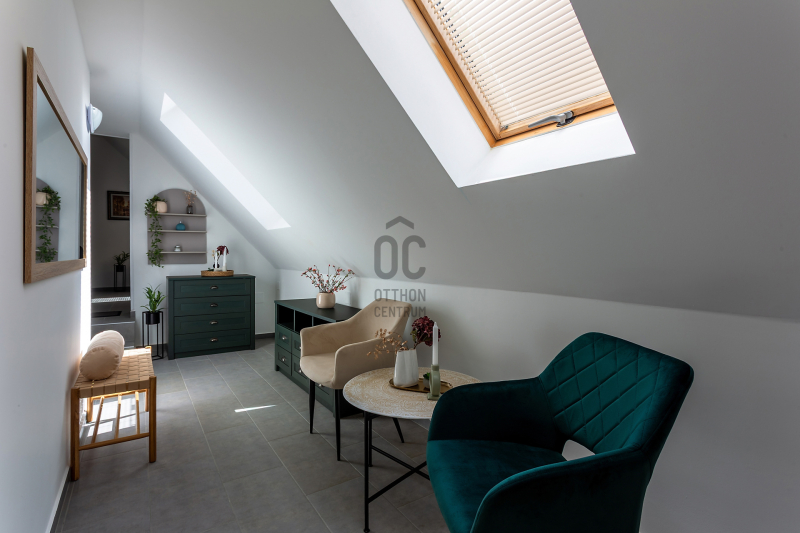 *További helyiségek: közös konyha feljárattal az emeletre, fürdőszoba WC-vel, közlekedő, szoba, gépészet