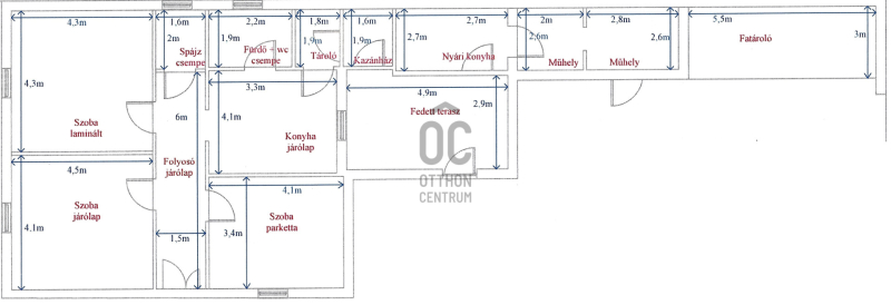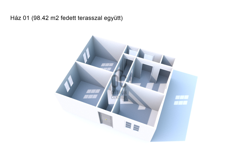 Ház 01: 98.42 m2, 3 szoba, konyha, fürdőszoba-wc, közlekedő, tároló, terasz (felújítandó ingatlan)