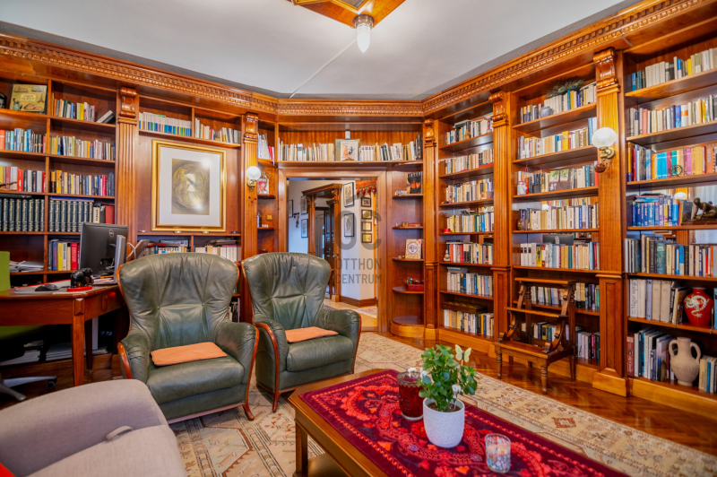 A földszint szíve az egyedi tervezésű könyvtárszoba – ideális esti beszélgetésekhez, családi együttlétekhez vagy egyszerűen elvonuláshoz.