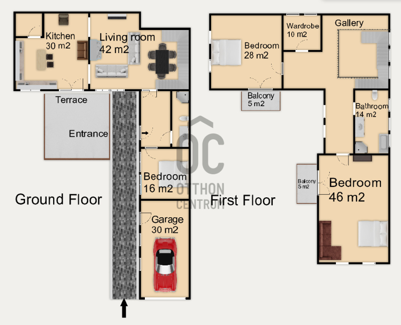 •Mert a 2 fürdőszoba káddal és zuhannyal, valamint a 42 m² nappali lehetősége valódi kényelmet kínál több generációnak is.