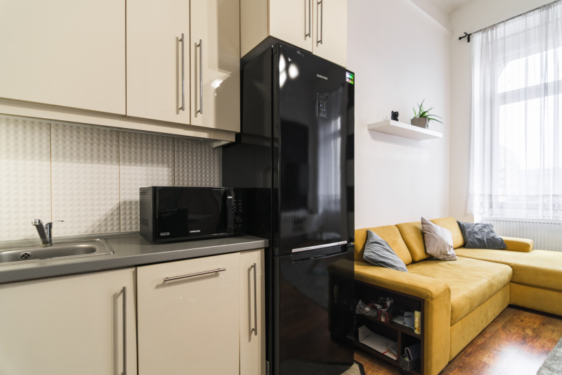- Világos amerikai konyhás nappal, tágas hálószoba
