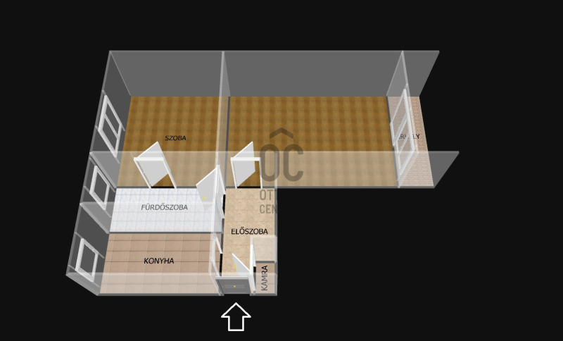 - 55 m2 ( 2 szoba, konyha, fürdőszoba, előszoba, kamra, erkély)