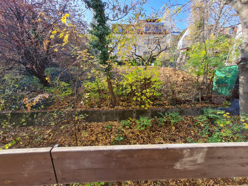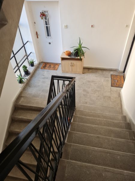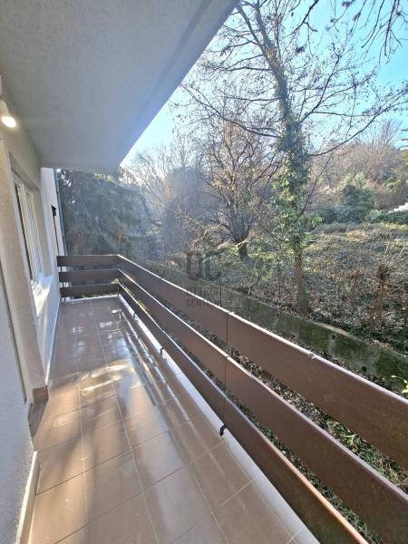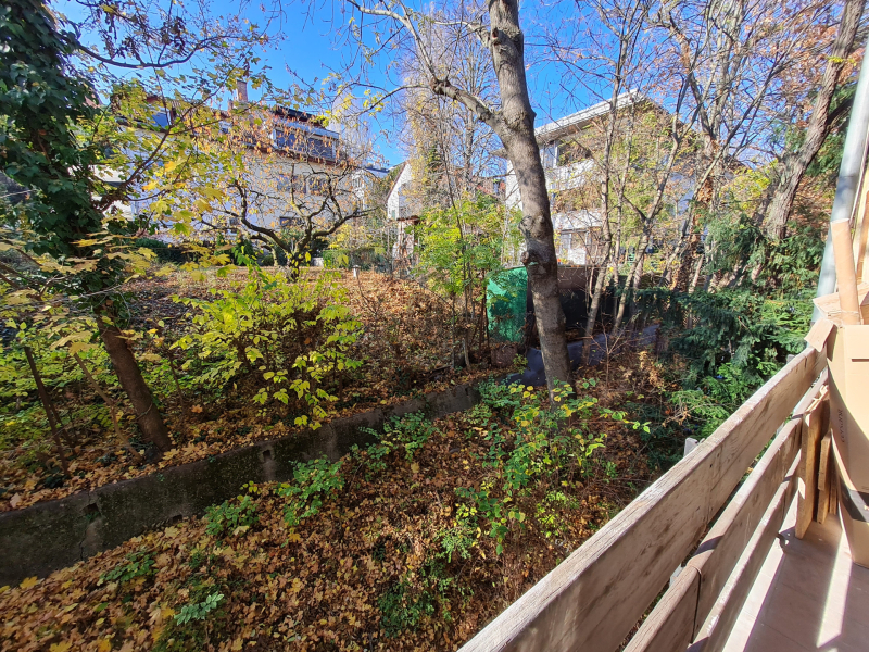 A lakás egy kis társasház első emeletén helyezkedik el, egy csodás zárt kertben, fák, bokrok és madárcsicsergés közepette.
