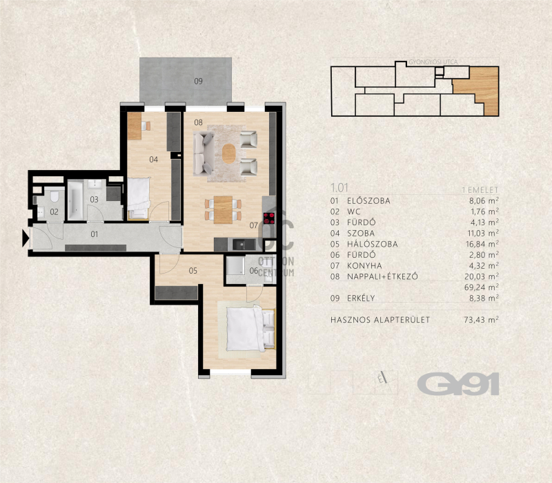 A földszinti lakások egy része kertkapcsolattal rendelkezik, amely ideális választás lehet azoknak a vevőknek, akik kisállattal rendelkeznek vagy zöld környezetre vágynak