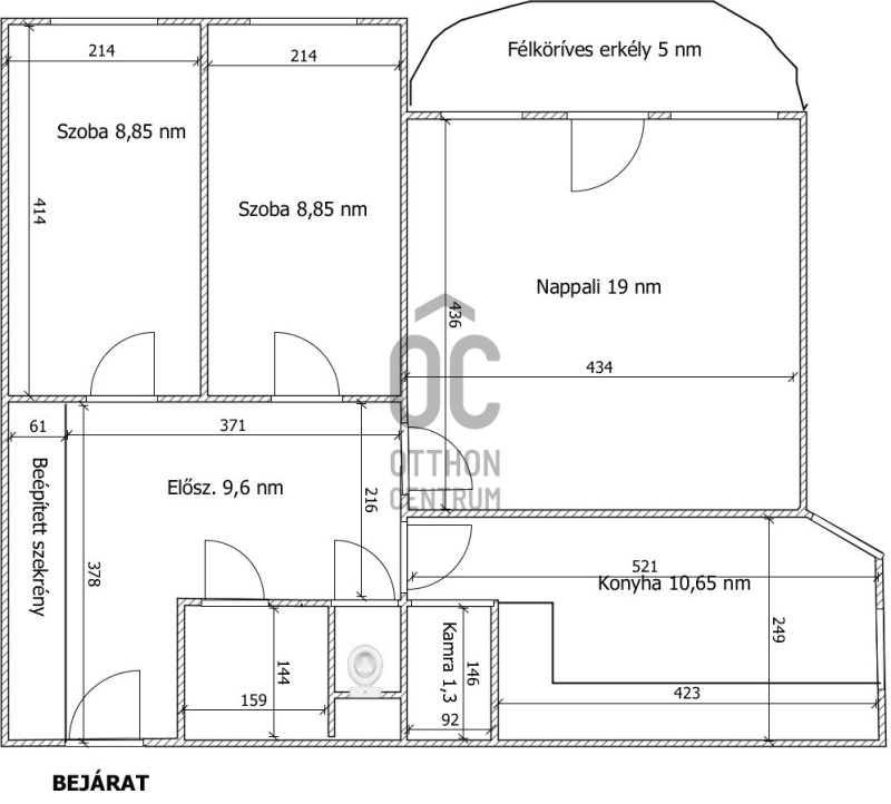 -két hálószoba + nappalis elosztás (a konyha a nappalival egybenyitható)