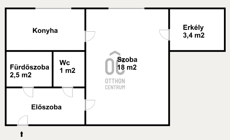 részei: szoba, konyha, fürdőszoba WC külön helyiségben, előszoba, erkély.