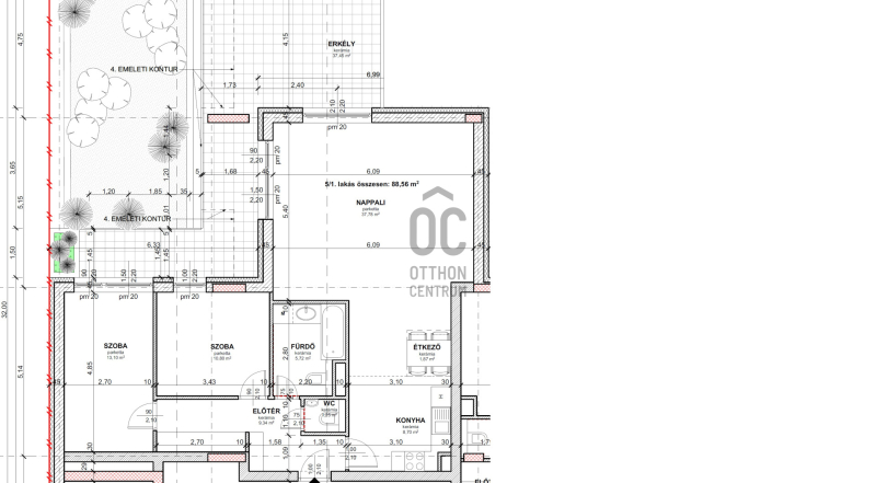 Erkély mérete: 58 m2