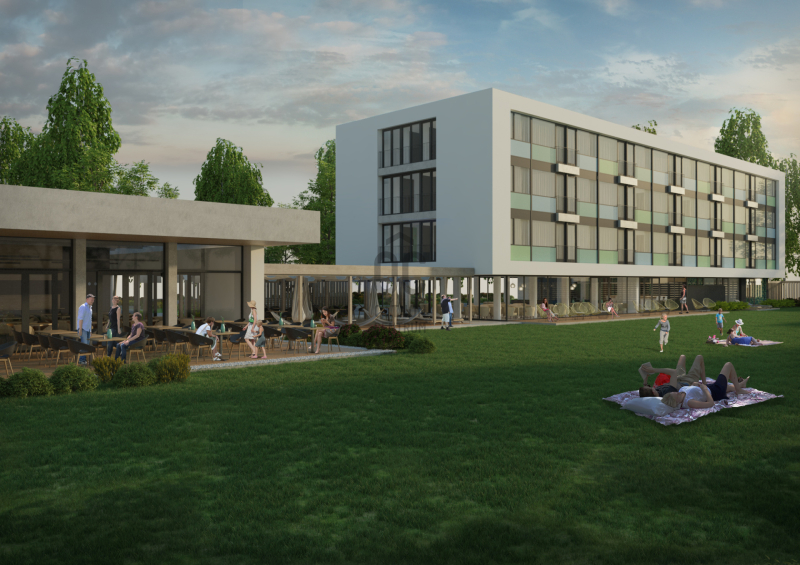 A telken a ’70-es évek elején épült szálloda- és étteremépületek állnak, összesen 66 darab kétágyas szobával. A telek elhelyezkedése, mérete és vízparti adottságai miatt kiemelkedő lehetőséget kínál turisztikai, szállodai vagy komplex fejlesztési célokra.