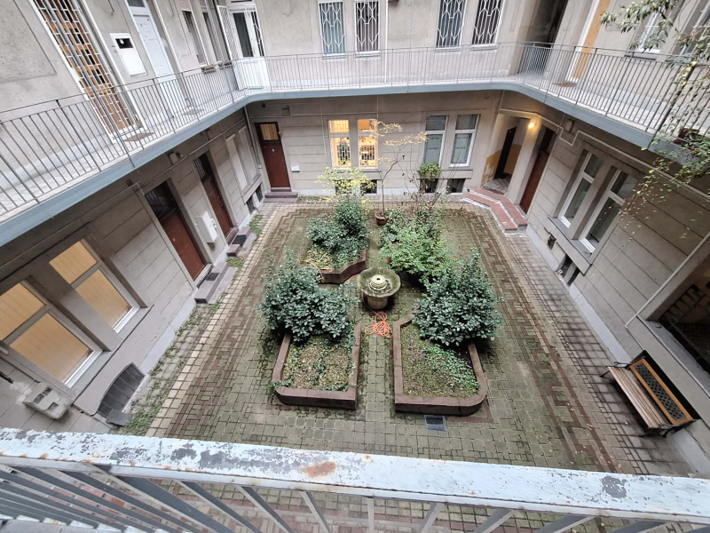 A társasház rendezett, tiszta, jó állapotú, ápolt belső udvarral és lépcsőházzal, kulturált lakóközösséggel.