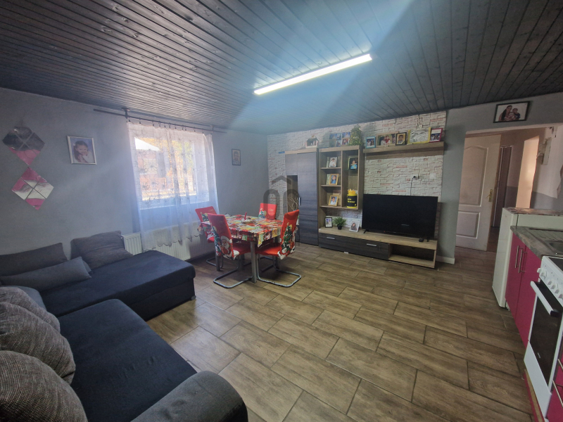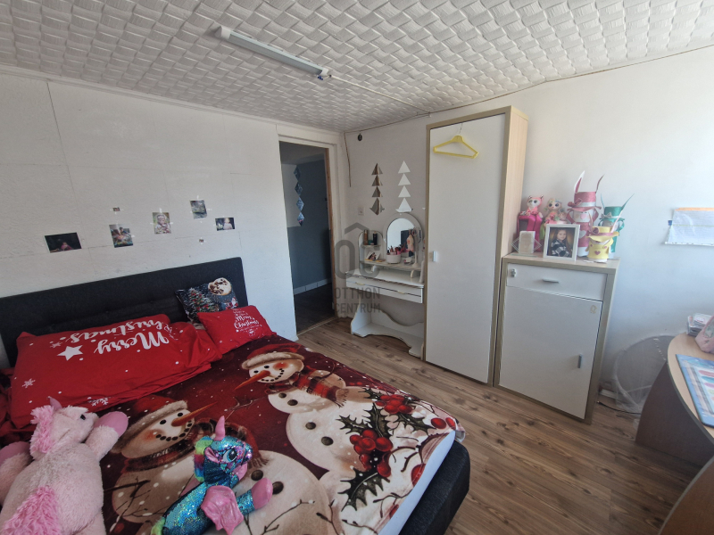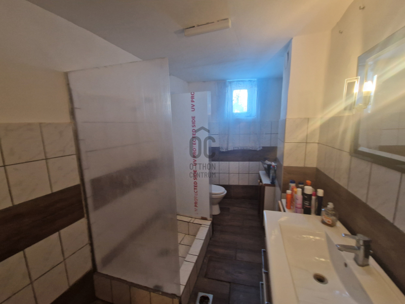 Helyiségek: 3 hálószoba, konyha-étkező-nappali, közlekedő, előszoba, fürdőszoba wc-vel, mosókonyha-kazánház.