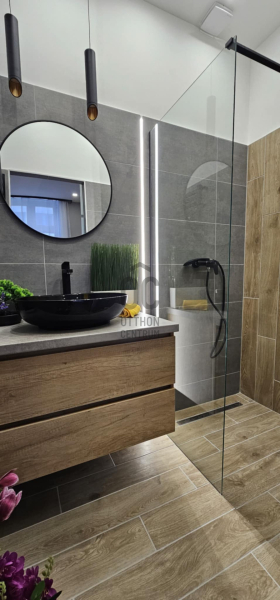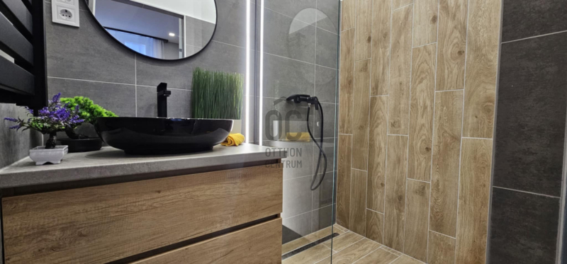- tágas zuhanyzóval ellátott fürdőszoba, jól pakolható mosdószekrény, törölközőszárítós radiátor,