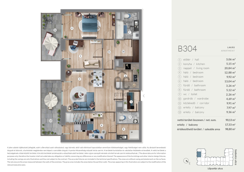 Erkély mérete: 17 m2