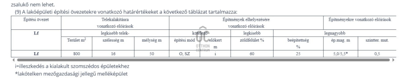 - A telek alkalmas lakóház, kereskedelmi, szolgáltató, szállás jellegű, iroda, kulturális létesítmény építésére.