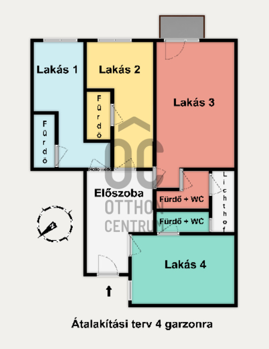 Akik befektetésként vagy üzleti lehetőségként gondolnak rá, azok számára készítettem egy 4 garzonos felosztásra vonatkozó elrendezési tervet.