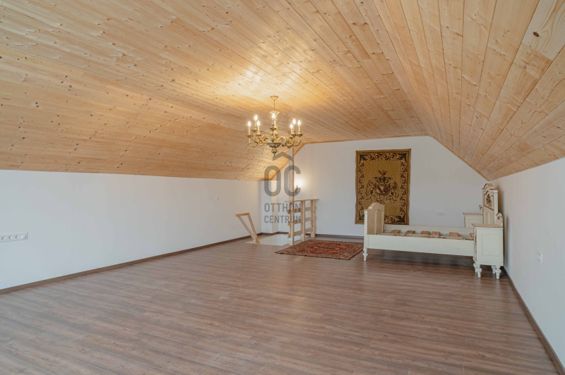 - Alsó szinten konyha-étkező és fürdő-WC, a tetőtérben pedig egy panorámás, világos nappali, amely tökéletes élettér vagy vendégtér