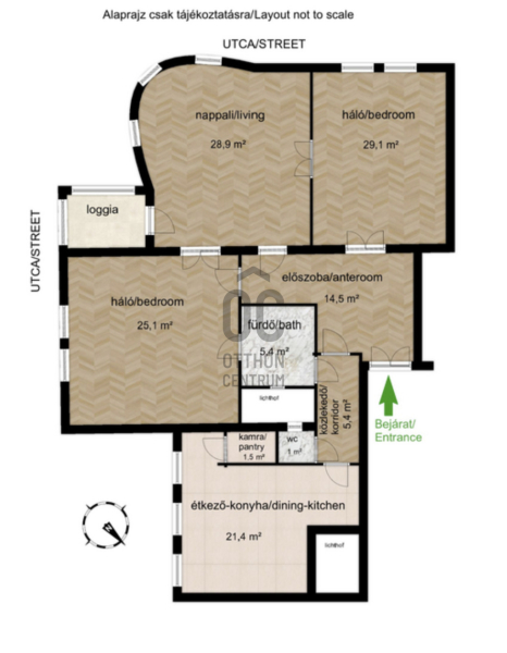 A lakás központi tere a körablakos, világos nappal, amely kellemes közösségi térként működik. Innen jól elkülönülve nyílik a két különnyíló, világos hálószoba, így a lakás több élethelyzethez is rugalmasan igazítható.