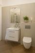 A lakásban zuhanyzós fürdőszoba WC-vel, valamint külön vendég WC kézmosóval is van, ami több fő esetén, illetve vendégforgalom mellett is kényelmes megoldás.