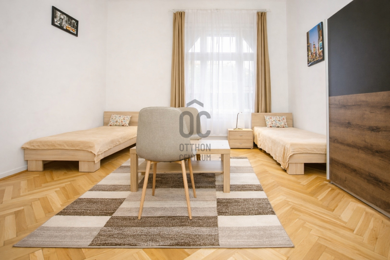Eladó Budapest VIII. kerületében, a Corvin sétány közvetlen közelében egy 103 m²-es, világos, tágas, 3 szobás, teljes körűen felújított, bútorozott polgári lakás. A lakás egy rendezett, mindössze 16 lakásos társasház legfelső, 3. emeletén található, csendes, egyirányú utcában. Déli fekvésének és óriási ablakainak köszönhetően egész nap rendkívül világos. A teljes bútorzat és berendezés a vételár részét képezi, így a lakás akár azonnal költözhető vagy kiadható.