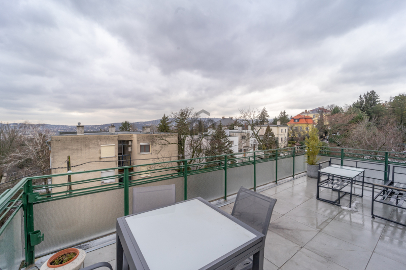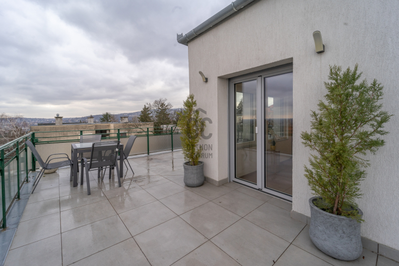 A lakás a társasház csendes felső szintjén helyezkedik el, ahonnan páratlan kilátás nyílik a Gellért-hegyre, a Budai Várra, a Parlamentre, a Halászbástyára és Budapest ikonikus városképére. A 48 m²-es tetőterasz ritka panorámás adottság: tökéletes helyszín pihenéshez, barátok fogadásához, esti beszélgetésekhez, naplementékhez – igazi városi menedék a város felett.